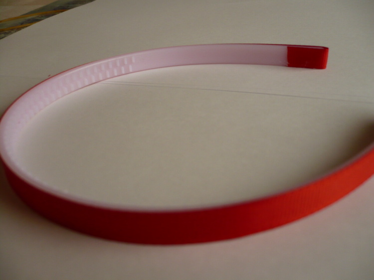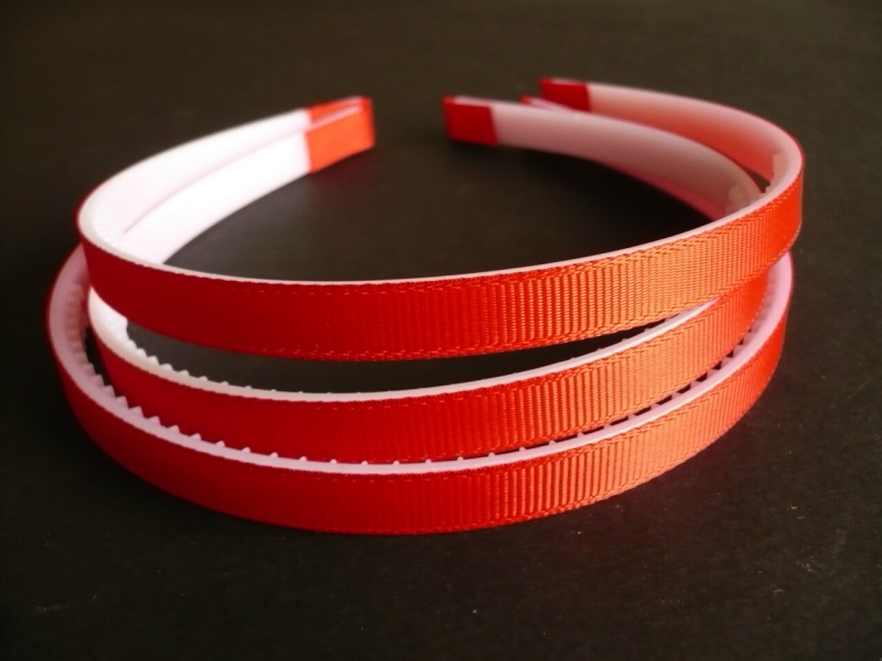 Opaski 0,9 cm pokryte materiałem czerwony w paseczki (ryps), sprzedaż na sztuki