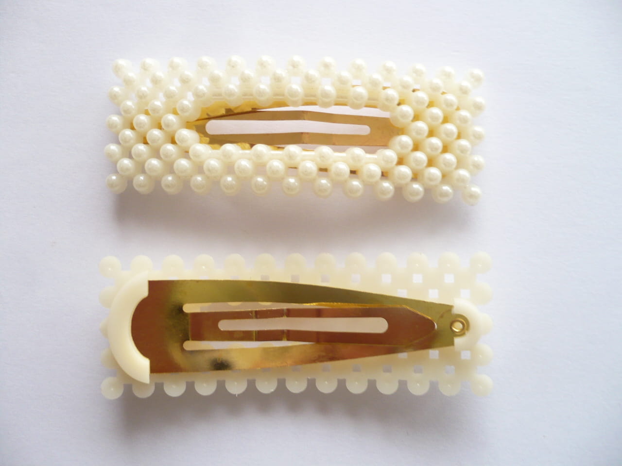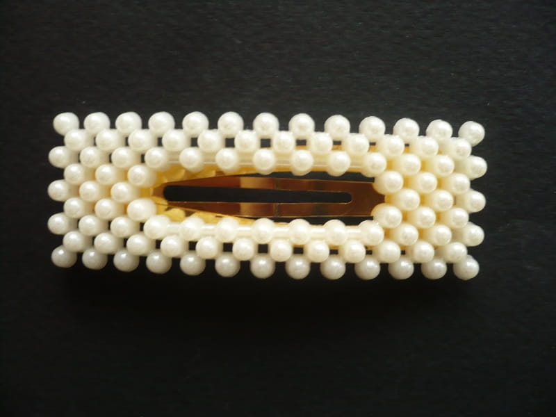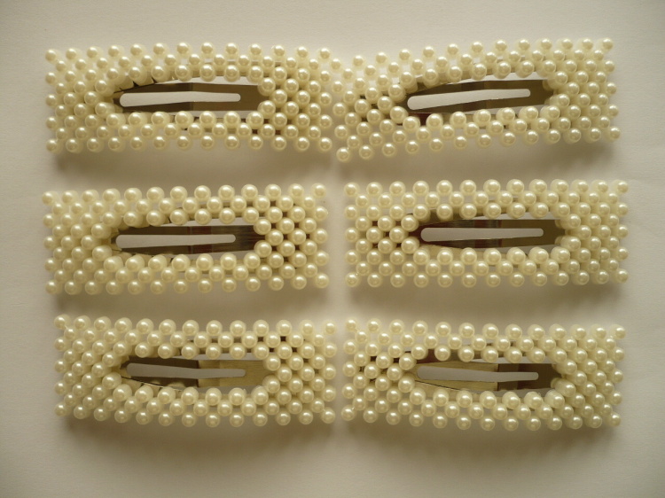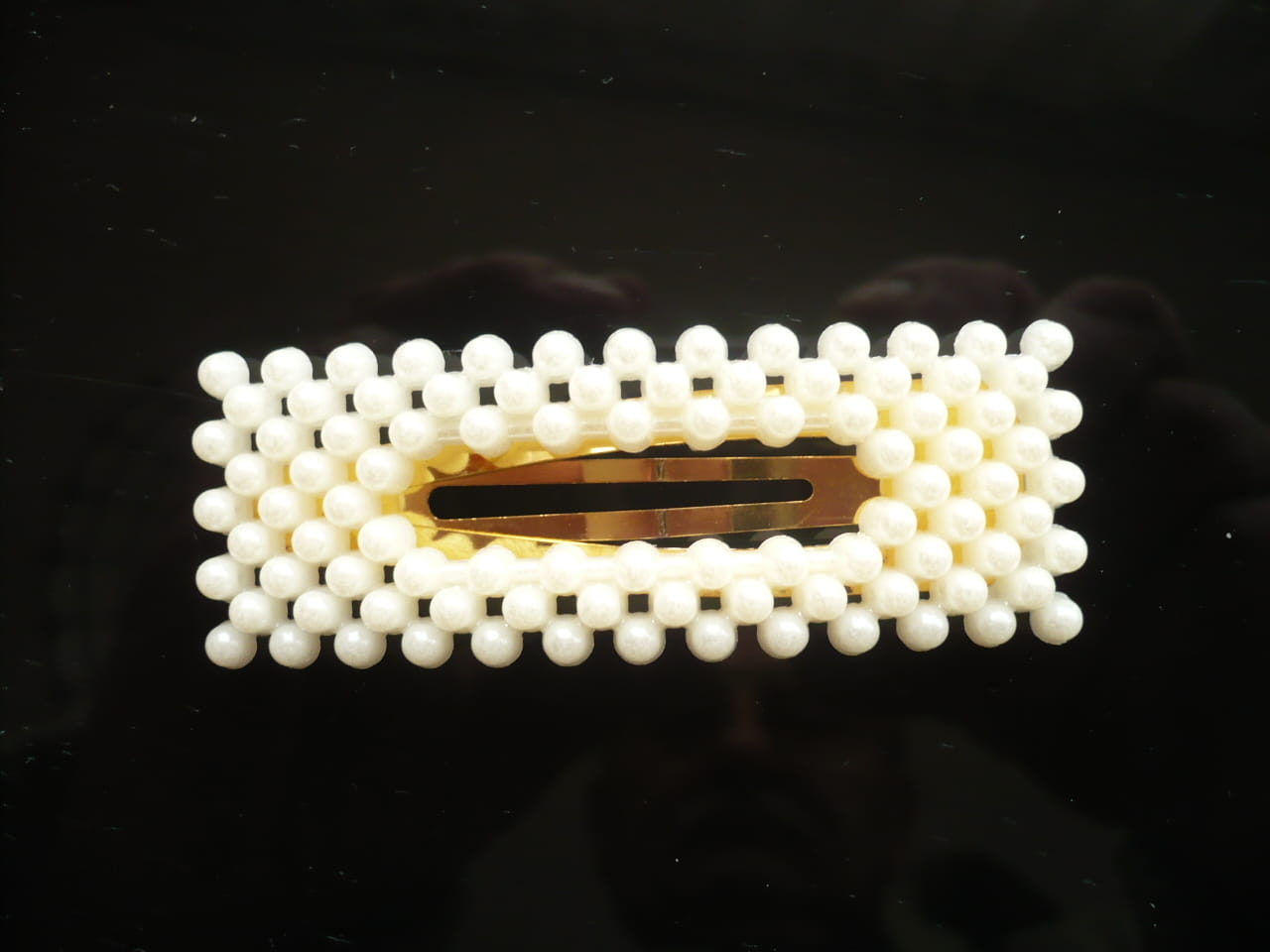 Ozdoba z perełek na pyku metalowym, rozmiar 7,5 x 2,5 cm