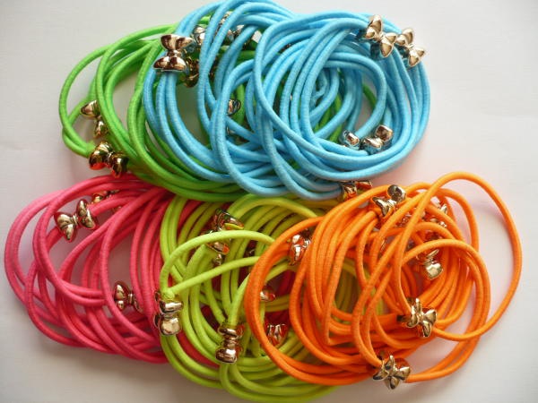 Gumki cienkie, podwójne, z klipsem metalizowanym złotym, komplet 5 szt. - mix kolorów