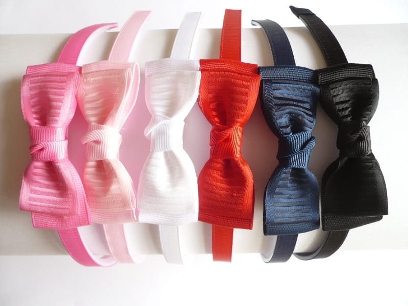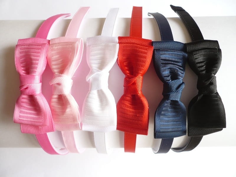 Opaski rypsowe z kokardką 7 cm podwójną, cena za 6 szt. - mix kolorów