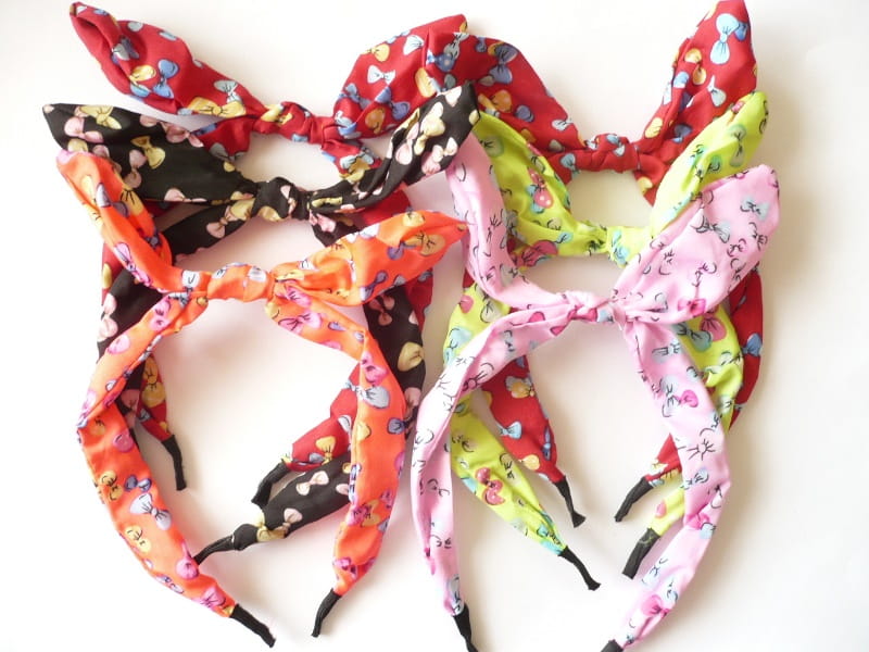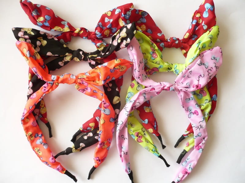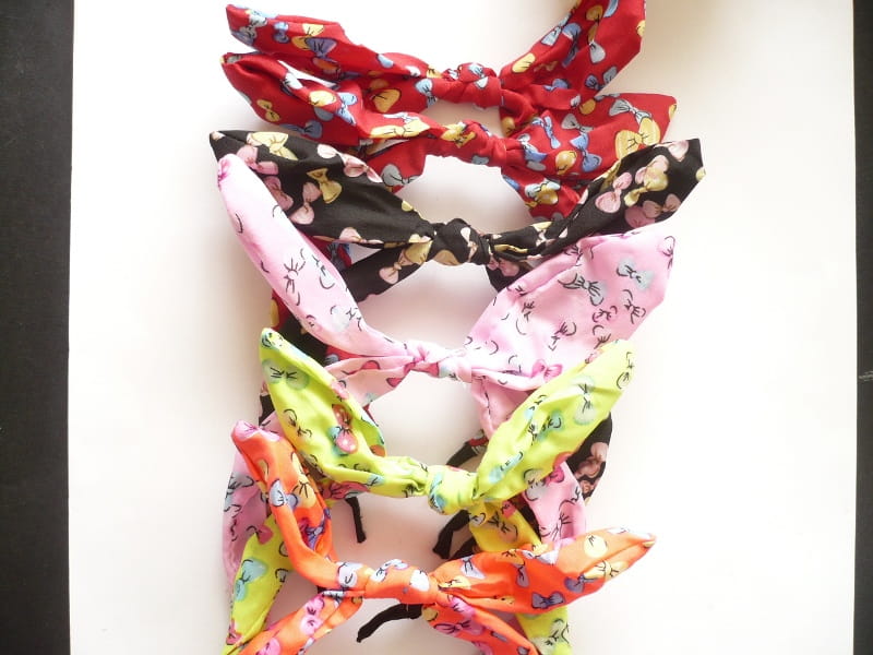 Opaski z kokardką-uszami, cena za 6 szt. - mix kolorów