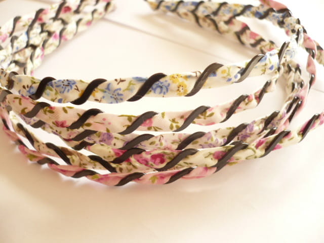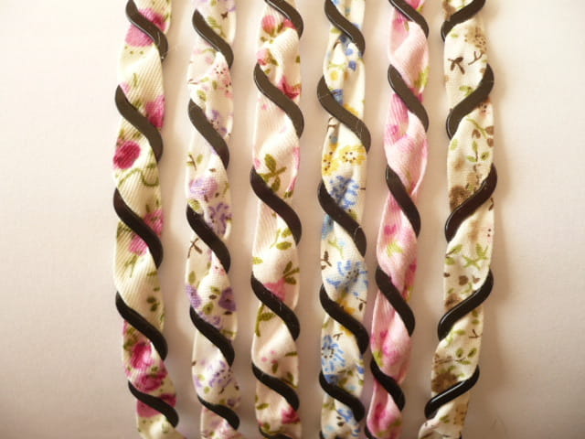 Opaska materiałowo metalowa, wąska, szerokość 0,5 cm, cena za 6 szt. - mix kolorów