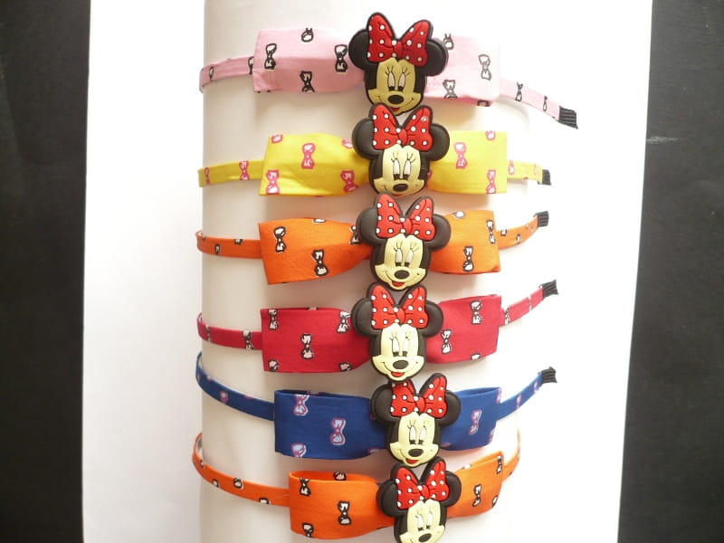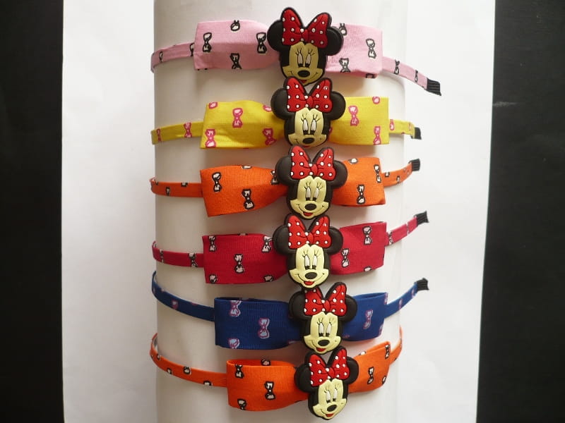 Opaska metalowa, bez ząbków, z kokardką i ozdobą, cena za 6 szt. - mix kolorów