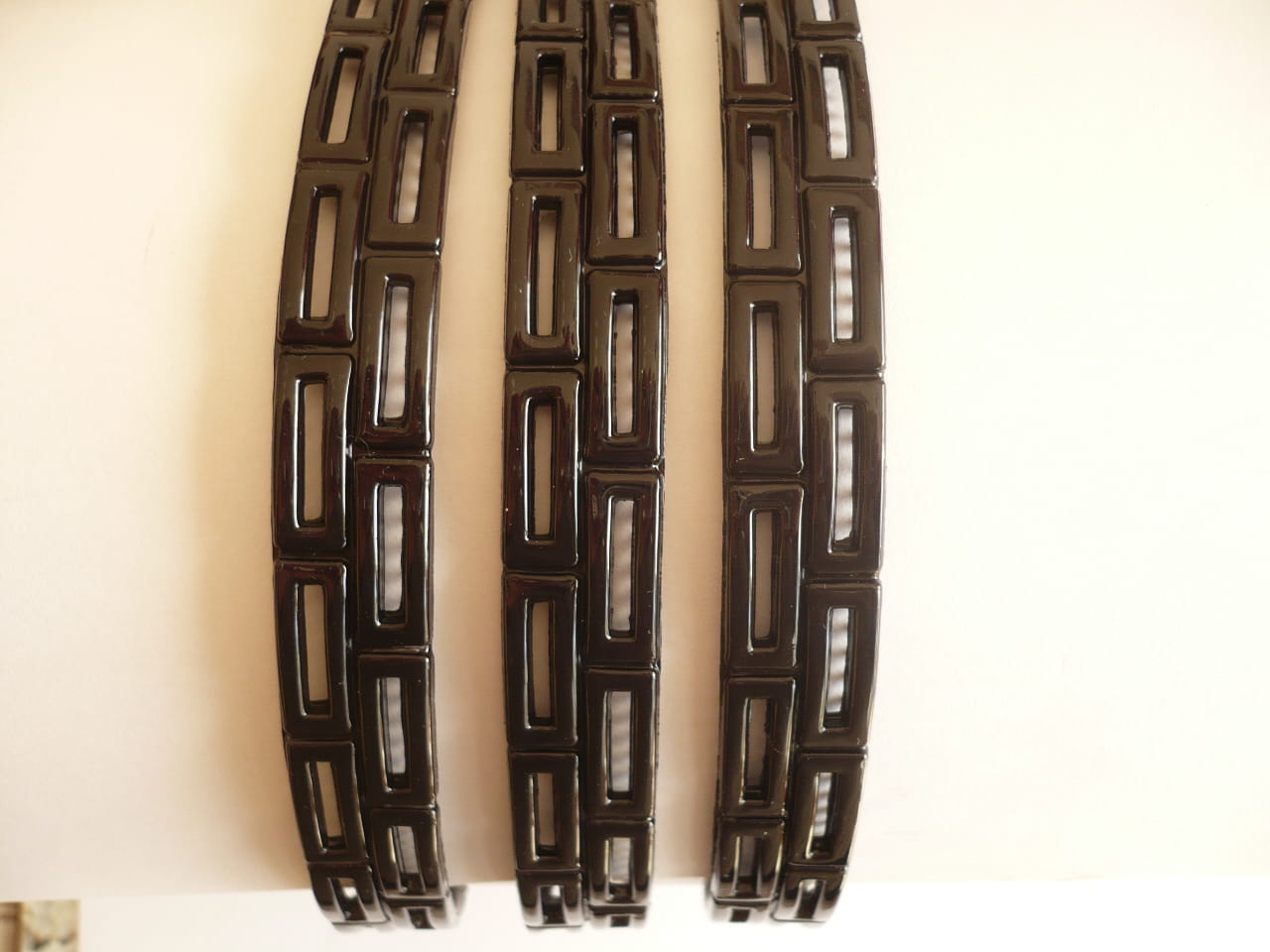 Opaska do włosów czarna lakierowana, szerokość ok. 1,5 cm, z podwójną linią ząbków, elastyczna, nie łamliwa