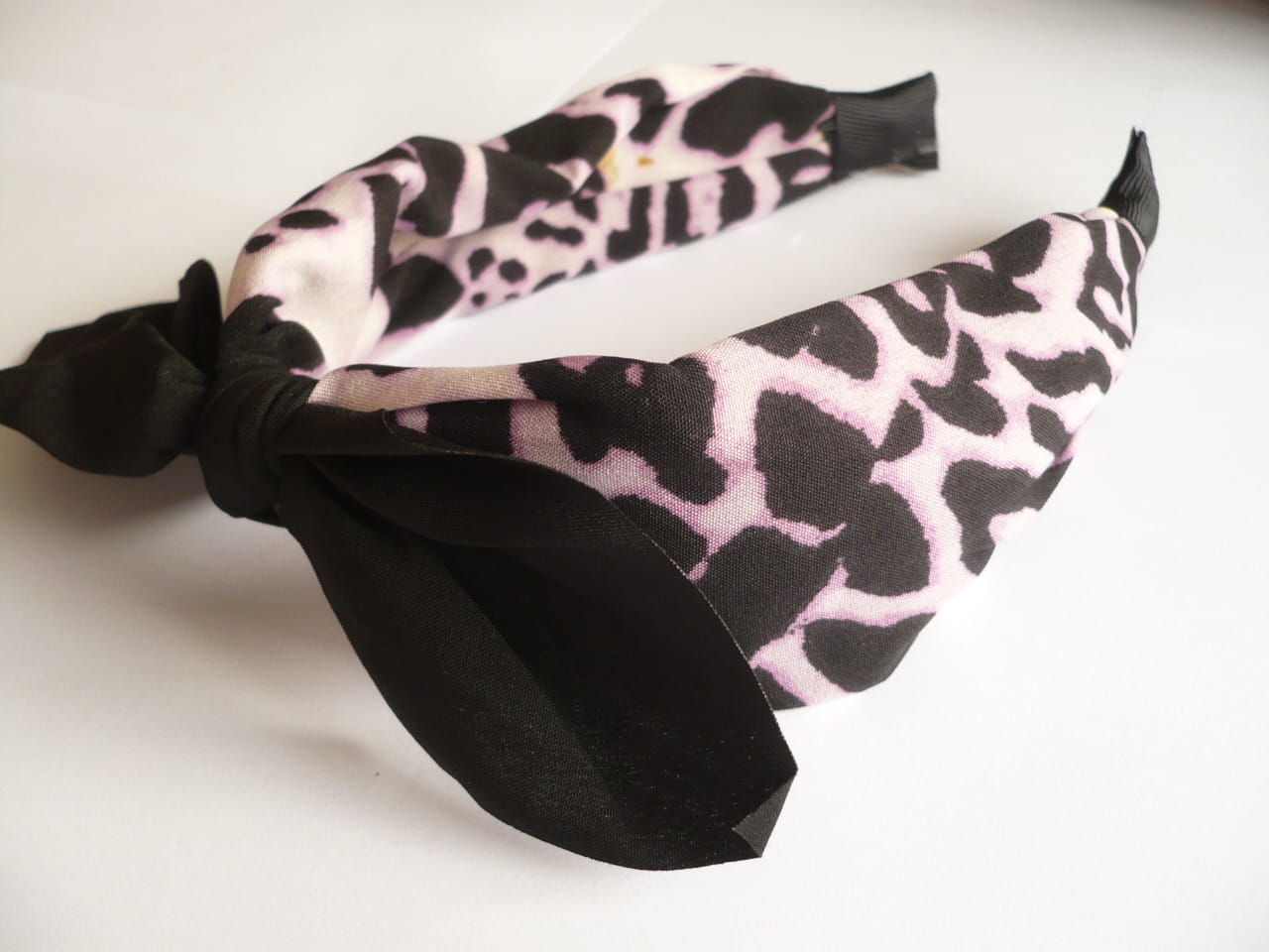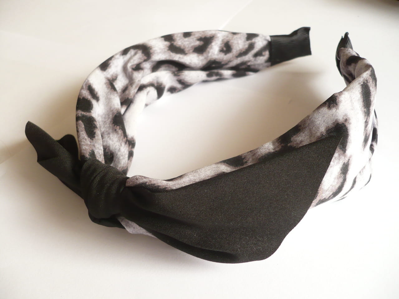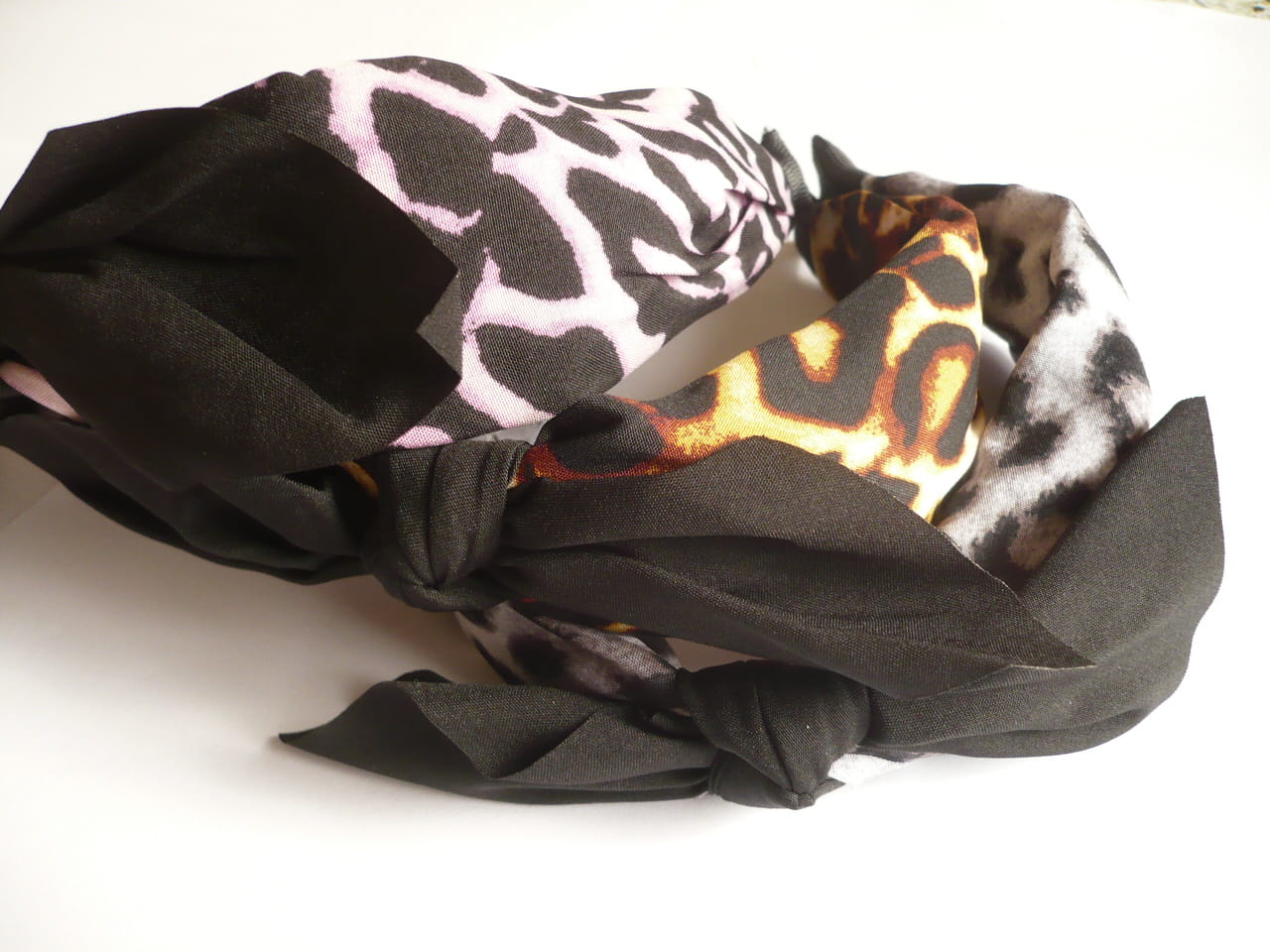 Opaska szeroka w panterkę z czarną kokardą z materiału, cena za 6 szt. - mix kolorów