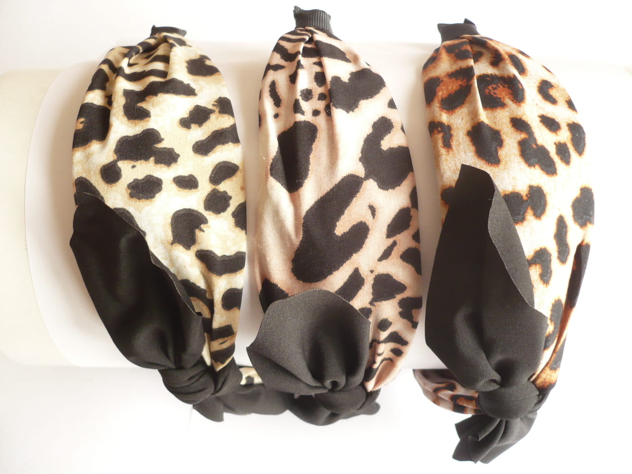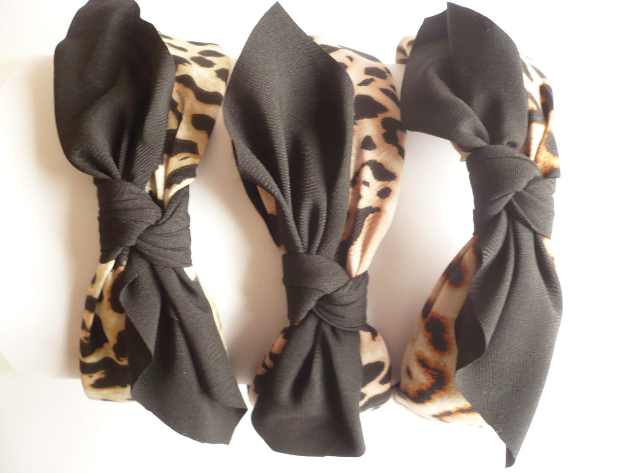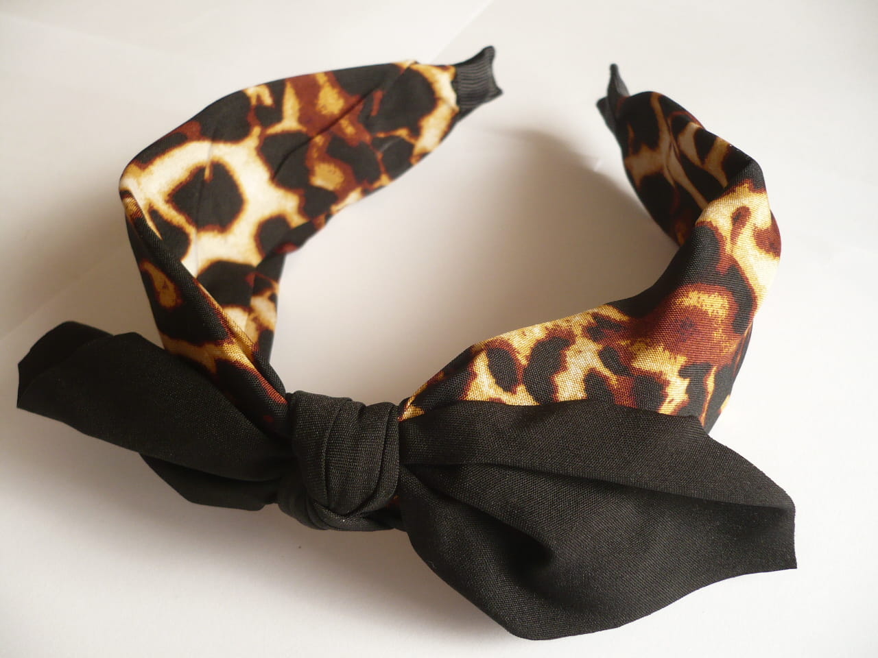 Opaska szeroka w panterkę z czarną kokardą z materiału, cena za 6 szt. - mix kolorów