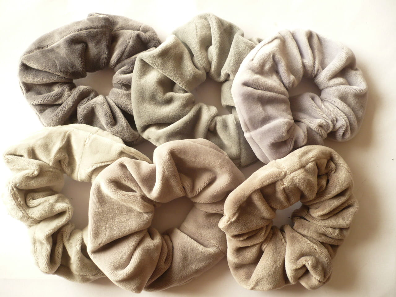 Gumki owijki z grubego miękkiego weluru, średnica 10-11 cm, zestaw 7 szt.: odcienie szarego