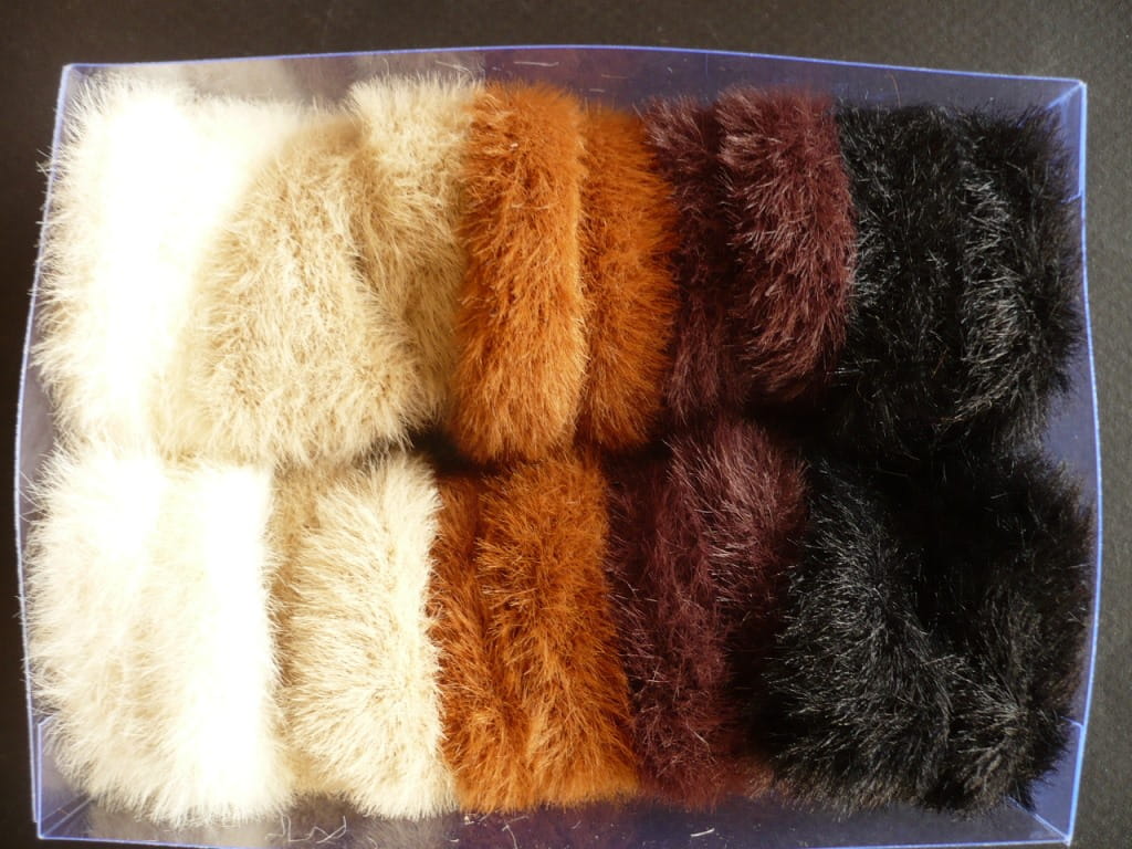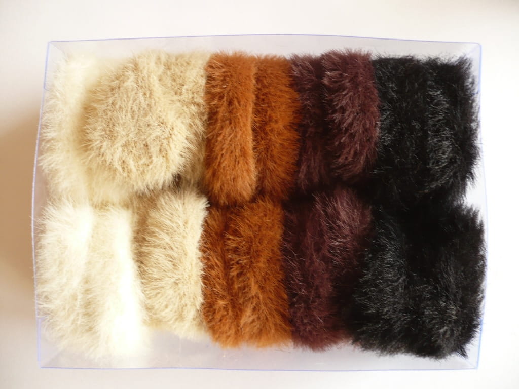 Gumki "mechate", średnica 4 cm, mix beży i brązów, cena za pudełko 20 szt.