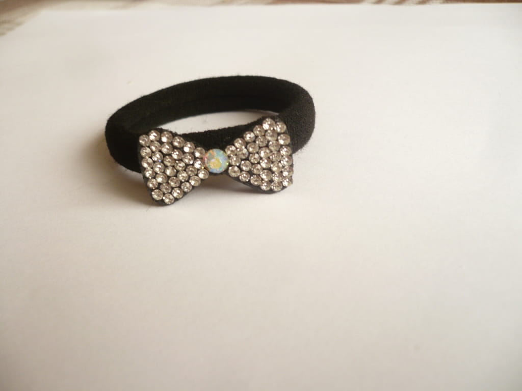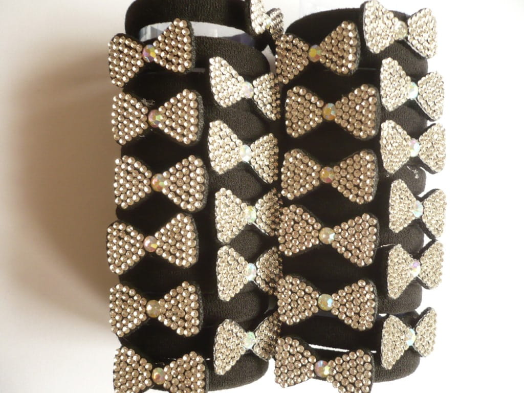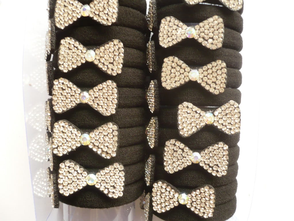 Gumka z silikonem o średnicy 4 cm z ozdobą dżetową - kokardka, cena za 12 szt.